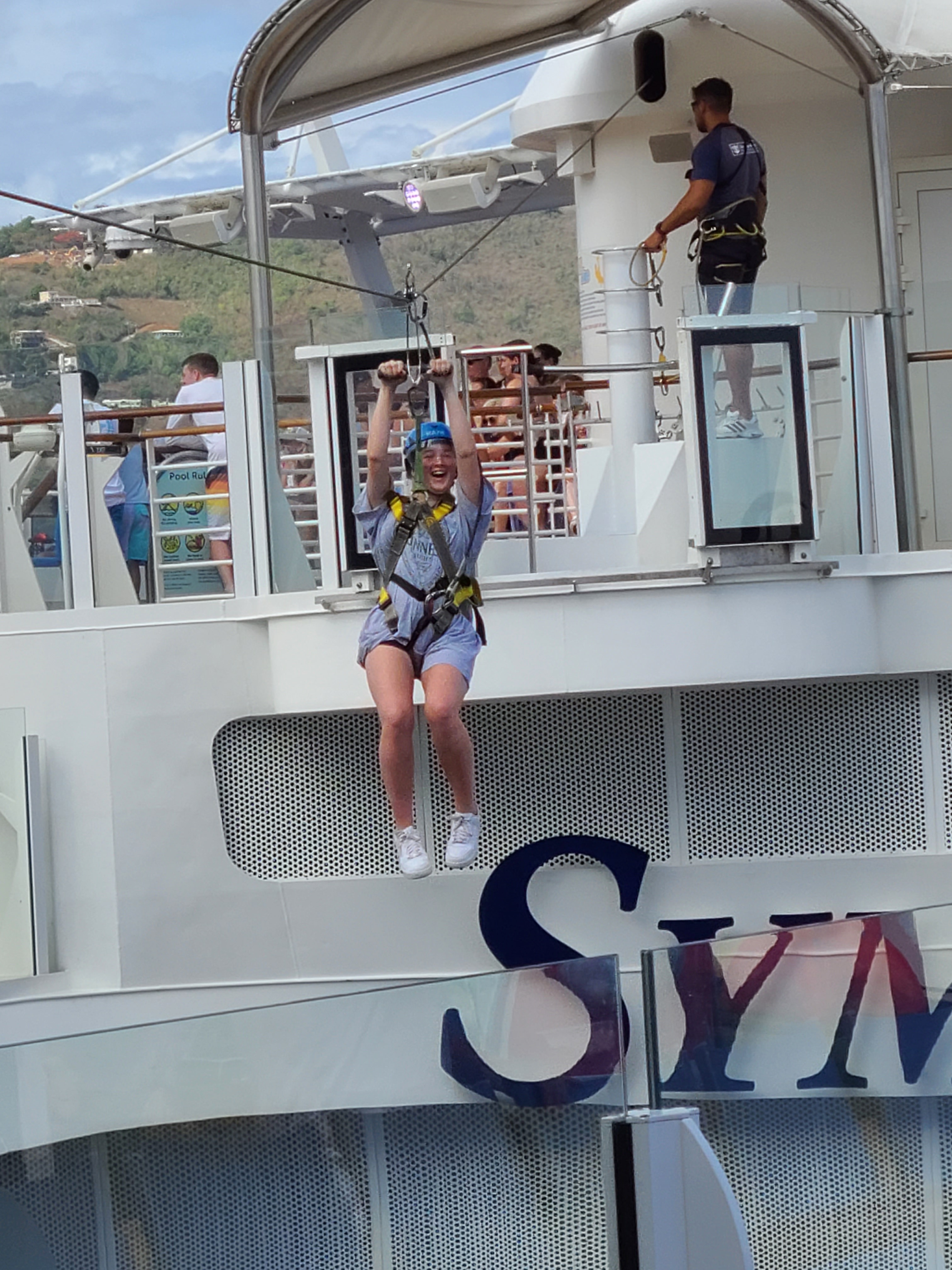 5. **Zip Line:** Soar nine decks above the Boardwalk on the ship's zip line.